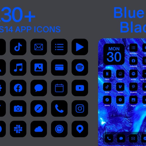 Ios Blue Black App Icons 230 Blue On Black Minimal Ios 14 Etsy